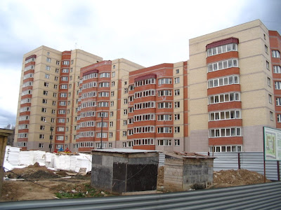 Некоторые больше похожи на студенческие общежития. Общежития мне напомнили безстекольные изрисованные балконы в коридорах. На этой же улице стоятся несколько новых домов.